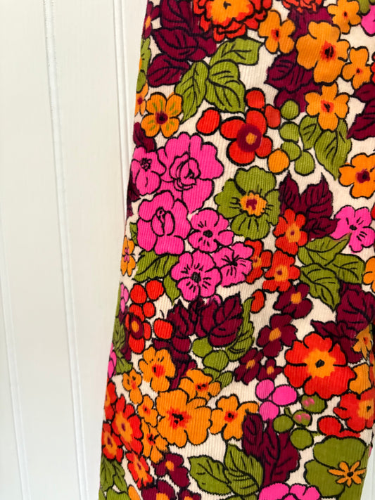 Bright floral corduroy pants - made to order