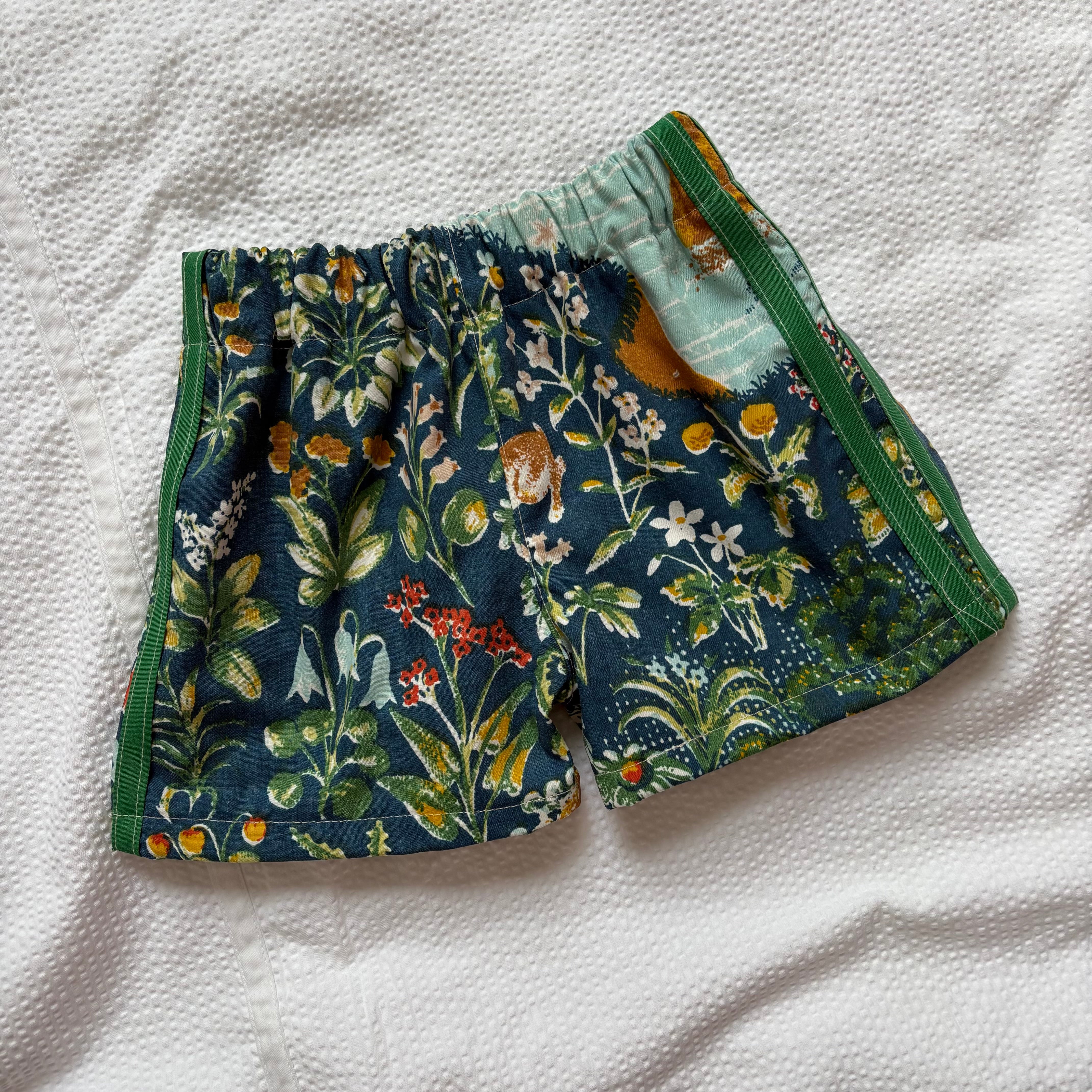 Handmade from vintage fabric & fully lined. Elastic waist and short inseam.