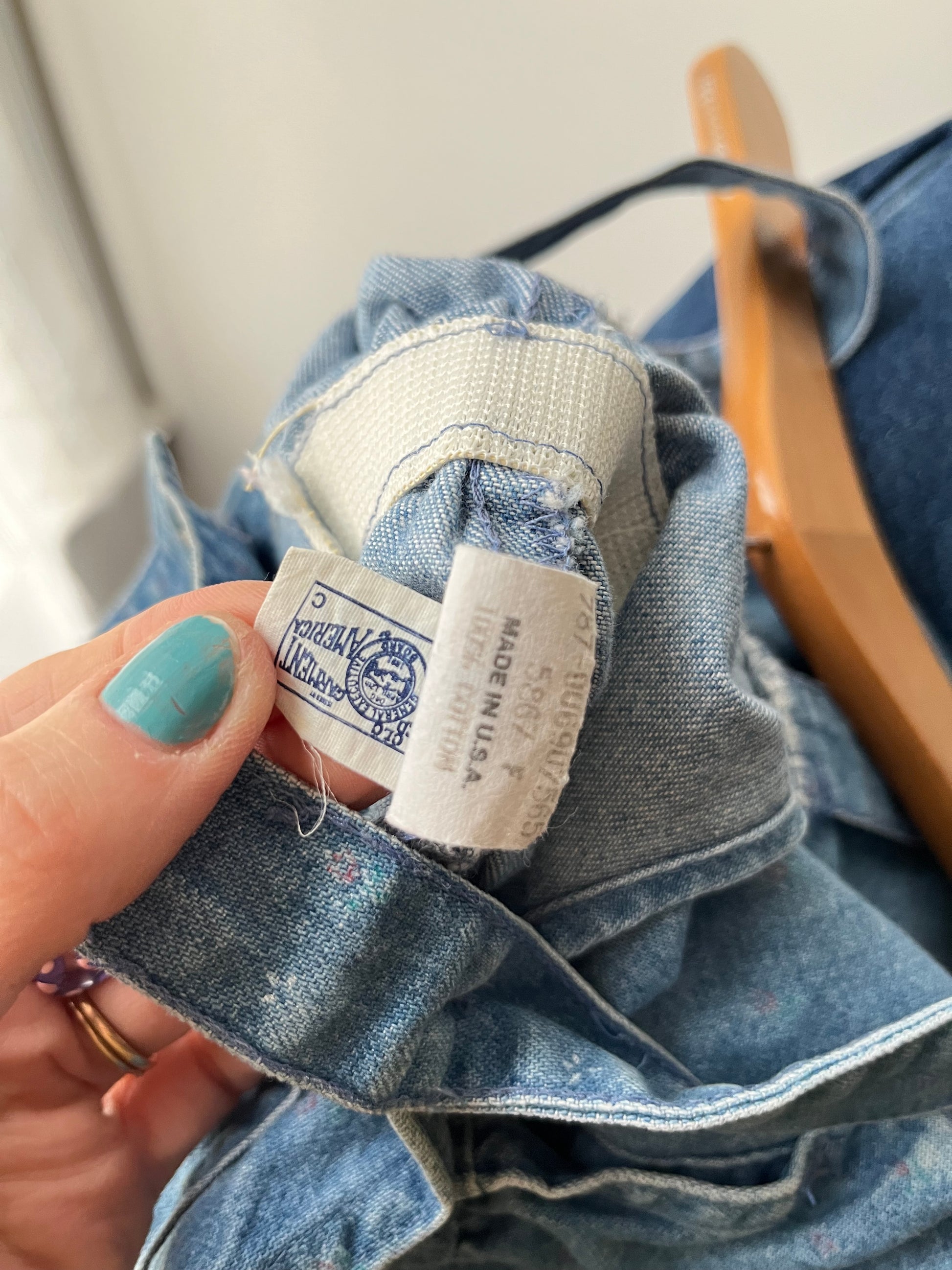 Faded floral print Oshkosh overalls. USA / Union made. 100% cotton. Fading around knees and bum, but structurally sound :)
